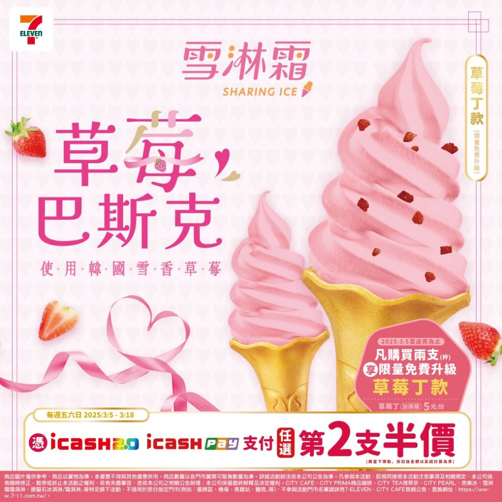- 即日起至3月18日,每週五六日思樂冰全口味第2杯半價,雪淋霜全口味使用icash pay或icash 2.0支付享第2支半價。
