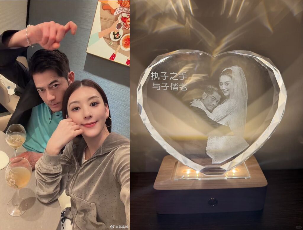 最引起網友熱烈討論的,是郭富城送給妻子的紀念禮物。那是一個刻有兩人婚紗剪影,並印有水晶字樣「執子之手,與子偕老」的擺飾。有眼尖的網友發現,這款擺飾在購物平台上的價格相當親民,屬於平價款式,讓不少人驚訝表示「天王也太接地氣了」、「禮物不在貴重而在心意」。