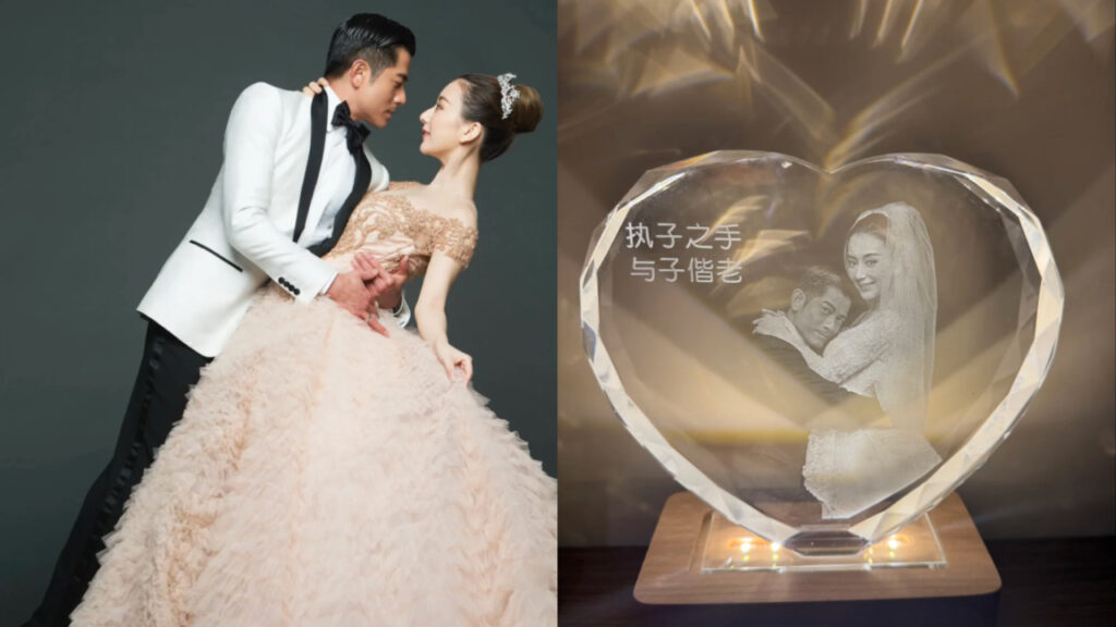 天王郭富城與妻子方媛慶祝結婚9週年,紀念禮物意外成為全網討論的焦點。近日他們曬出刻有婚紗照的訂製水晶擺飾,雖然畫面溫馨甜蜜,但有眼尖網友搜出同款商品,發現兩件禮物總價竟然不到600元人民幣,與天王的身價形成巨大反差,引發熱烈討論。