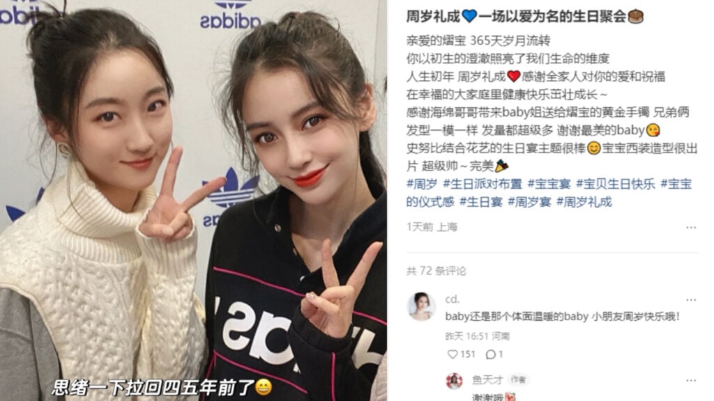 據悉,週歲宴在11月11日舉行。Baby贈送的黃金手鐲象徵為新生兒祈福健康平安,雖人未到場,但心意十足,黃曉明的親友也公開稱讚Baby私下「溫柔又真誠」,在家族中依然有著很好的評價。