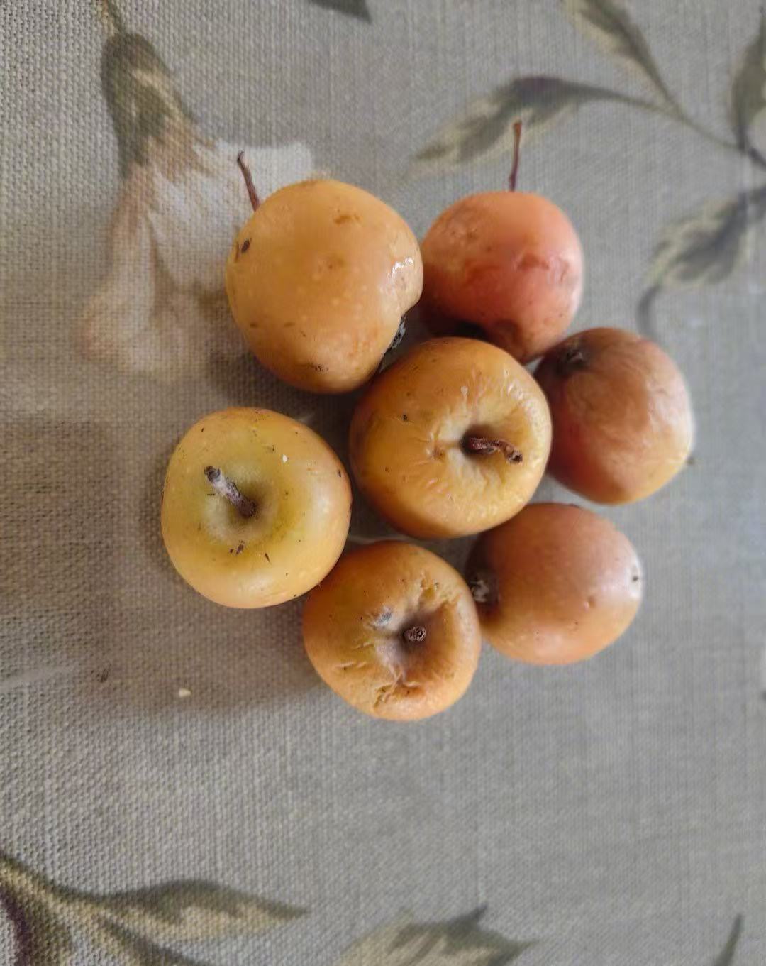 這個海棠果是我放置4個月後拍的照片,就是海棠樹上掉下來的自然成熟果實,我在樹下撿的,保證是純天然。拿回家後,在室溫放了一周。