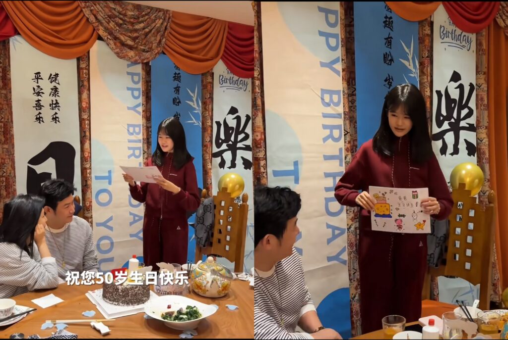 這場生日聚會辦在2026年1月6日,貝兒和妹妹小葉子為爸爸準備驚喜,兩人花了約4000元購買手工茶具、帽子等禮物,並親自寫下祝賀信。貝兒的信中寫滿感謝,例如陸毅長期為家人下廚,還在貝兒生日時悄悄買新手機當禮物,讓她留下深刻印象。