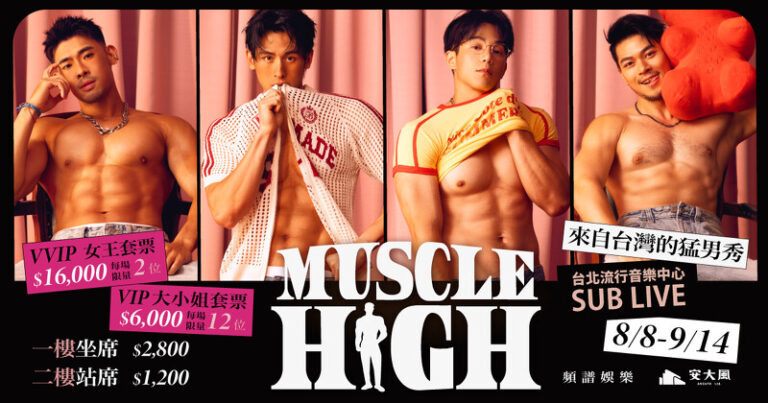 還在等國外猛男巡演?這次不用出國,《MUSCLE HIGH》直接將視覺高潮送到你眼前!來自台灣、原創打造的猛男秀《MUSCLE HIGH》即將於8月8日至9月14日,在台北流行音樂中心SUB LIVE重磅登場,6月27日(五)中午12:00起於KKTIX平台全面啟售,早鳥搶票限時開跑,錯過就只能等明年!