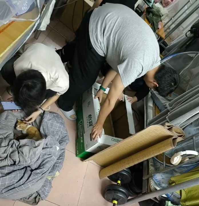 當事人非常慌亂,甚至於整個宿舍的人都紛紛不知所措!最後只好馬上去發消息給老師崩潰哭訴:「老師!有只貓在我床上生了5只崽崽!」老師心情也是很複雜的,只好交代讓他們先照顧安頓好小貓。