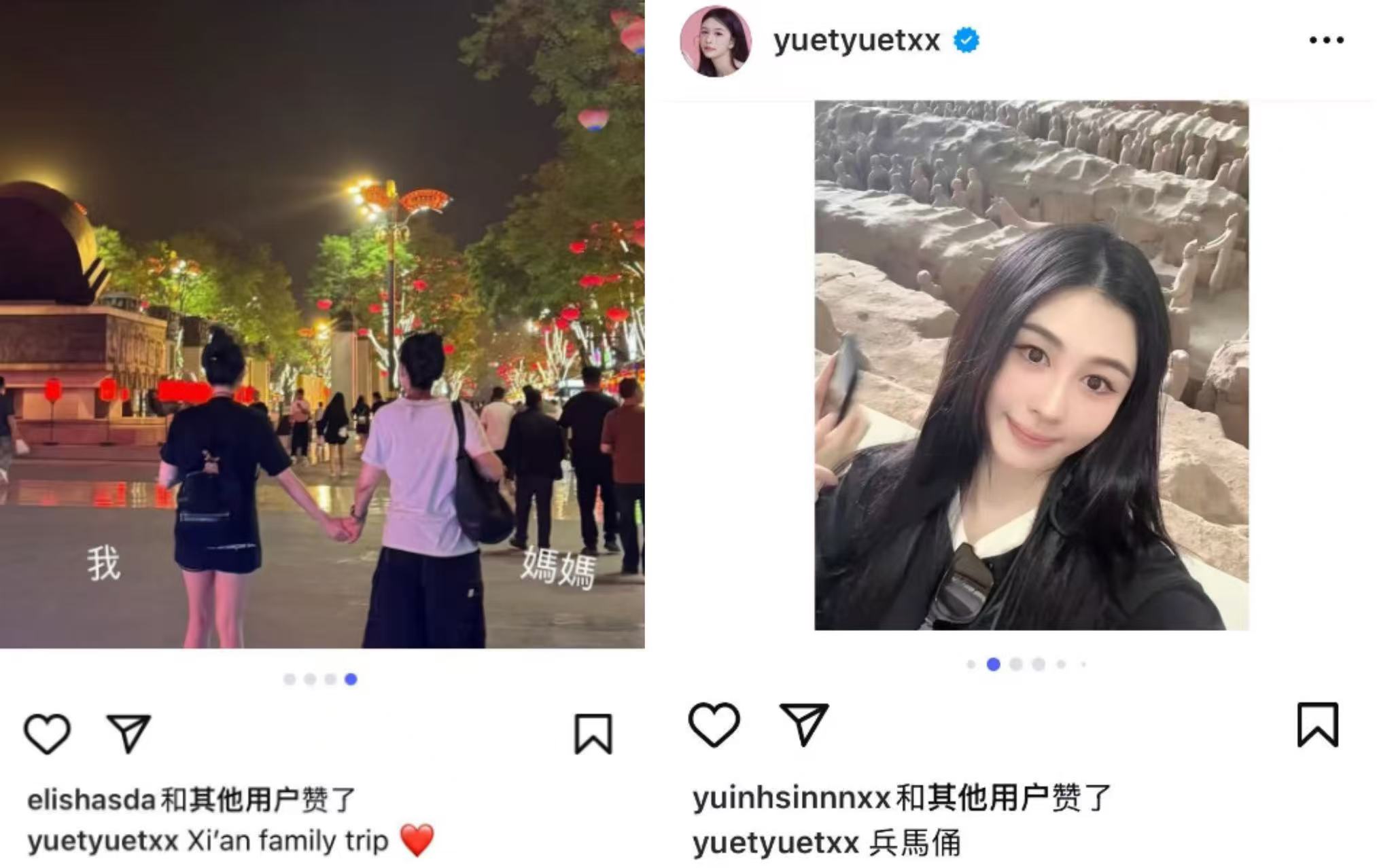 邱淑貞一家這趟旅行的行程安排相當貼近日常生活,既有文化氣息也充滿親民感。在兵馬俑博物館時,三人並未享有明星待遇,而是乖乖排隊參觀。沈月事後在IG分享照片時還特別提到,她們沒有走VIP通道,而是和大家一起擠在兵馬俑前,更能感受到現場氛圍。