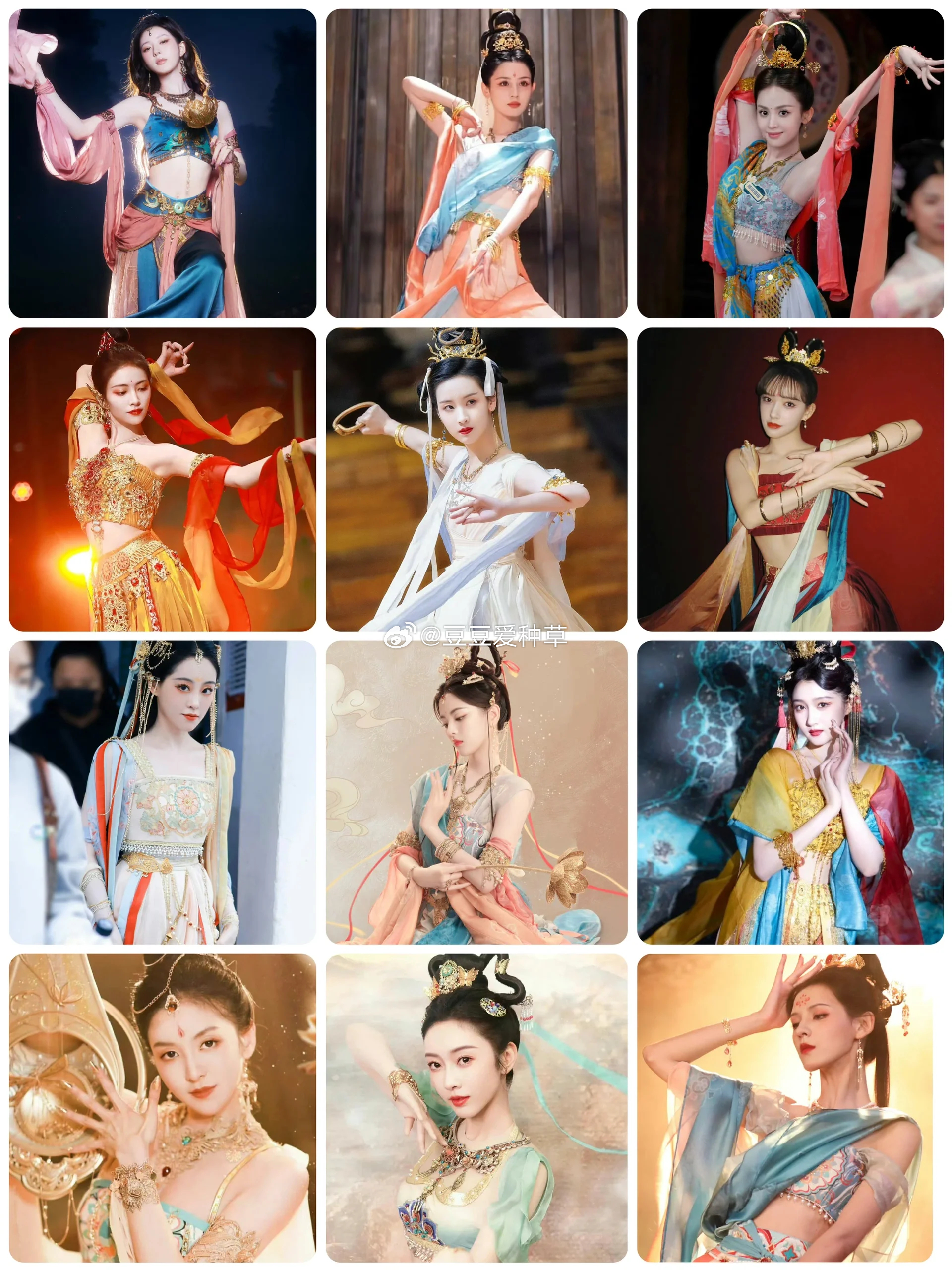 大概是敦煌的飛天造型太美,引得很多女星爭相模仿,據不完全統計,就有趙露思、陳都靈、古力娜扎、哈尼克孜、關曉彤、宣璐、張予曦、程瀟、楊超越重現過飛天造型,甚至帶動遊客去敦煌月牙泉專程拍照。