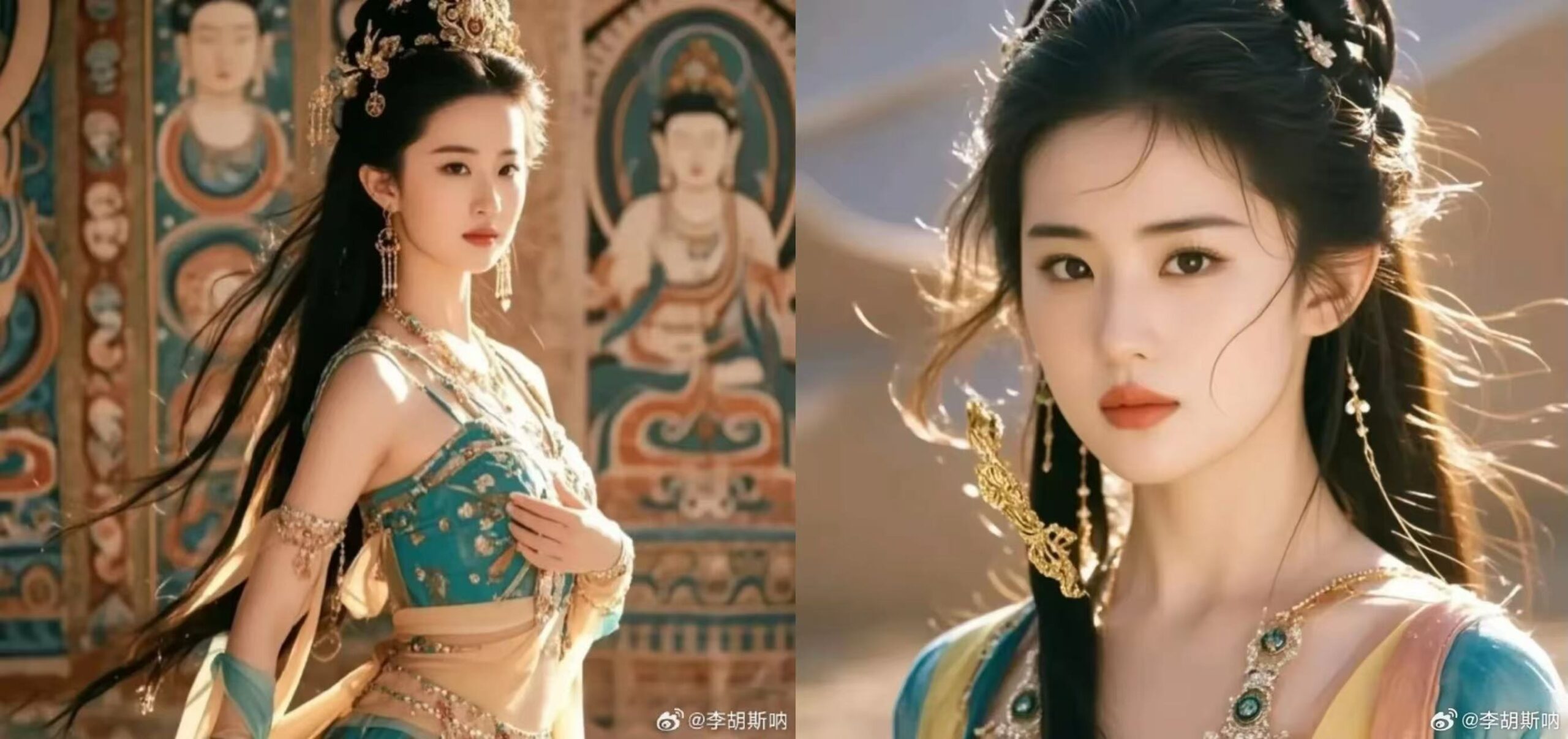 有粉絲用AI技術,為劉亦菲換上敦煌飛天造型,結果留言區直接炸開:「好美、好高貴~這才叫飛天神女。」也有人說「敦煌的美,又一次被復活了」。