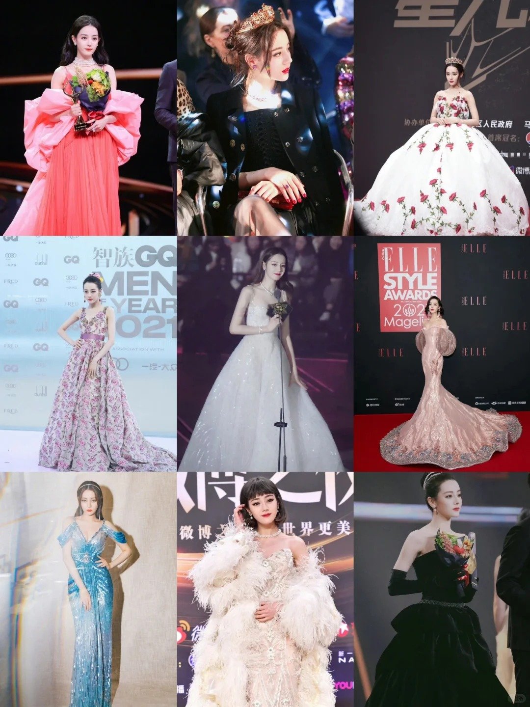 迪麗熱巴的紅毯表現向來受到矚目。她身高172公分,膚色白皙、五官立體,搭配高挑比例與穩定的鏡頭感,被網友稱為「定毯神針」。2025年的黑色燙金魚尾禮服造型曾登上多個時尚熱搜;過去包括玫瑰主題與藍色魚尾裙造型,也都被網友稱為經典。據悉,她每次出席活動都會試裝超過20套禮服,對造型細節要求極高。