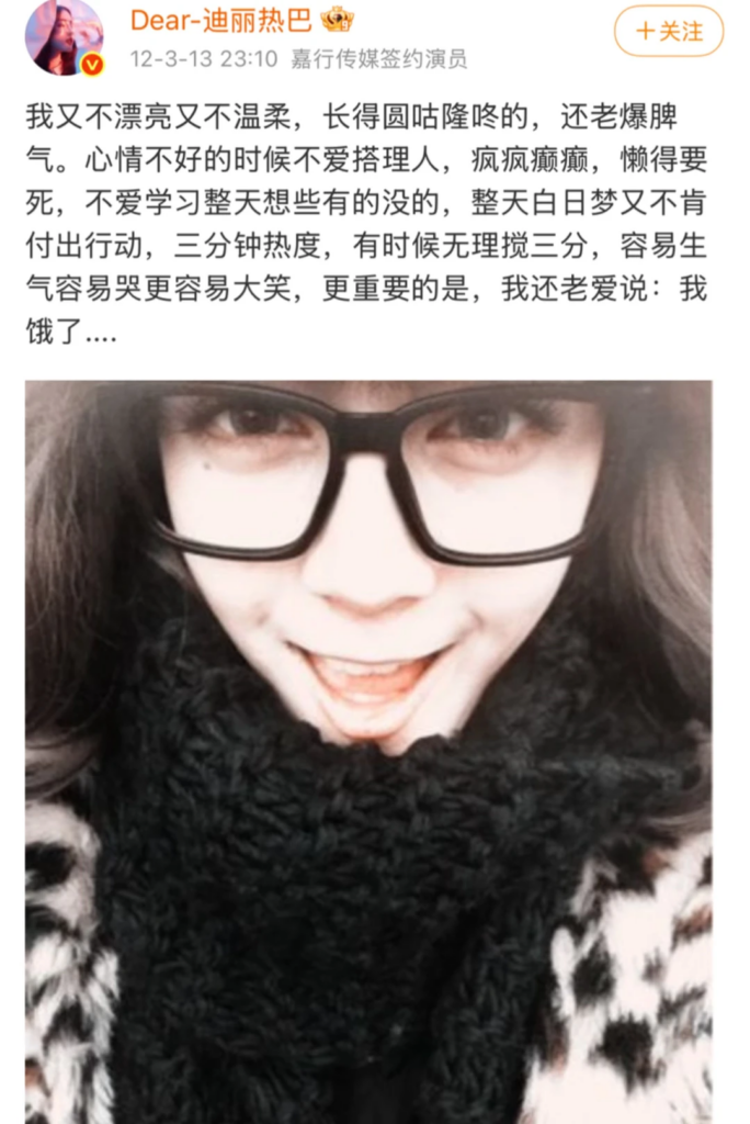 根據網路流傳的早期貼文,大約在2012年前後,當時年僅20歲的迪麗熱巴常在微博抒發心情。令人驚訝的是,她在文中不僅沒有明星光環,反而充滿了自我懷疑,曾自嘲「我又不漂亮又不溫柔」、「長得圓咕隆咚」,甚至形容自己「爆脾氣」、「懶得要死、愛做白日夢卻不肯行動」。這些毫無偶像包袱的日常碎碎念,與如今在螢光幕前自信閃耀的形象形成巨大反差。
