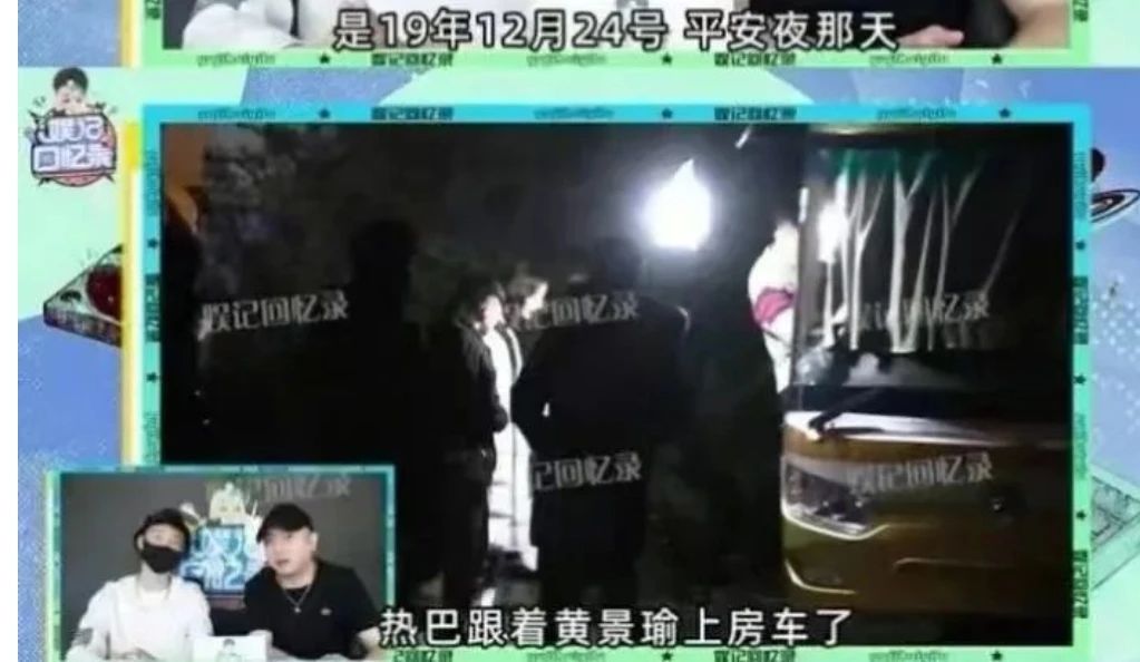 這個爆料後來有狗仔影片佐證,並且有具體時間:2019年12月24日平安夜。影片裡拍到兩人從房車出來時已經換了衣服,然後下車改坐上黃景瑜座駕,共同奔赴男方家。狗仔還說拍戲期間,兩人經常在同一輛房車裡換衣服。