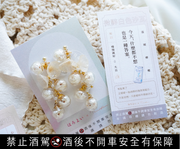 人氣低酒精調酒品牌Horoyoi微醉(ほろよい)今年春天首度跨界飾品圈,聯手台灣手作飾品品牌「參樓研製所」,將經典罐裝調酒的氣泡意象轉化為實體配飾。自4月1日起,於台北中山區展開為期一個月的限時聯名活動,除了推出以草莓蘇打、白色沙瓦等風味為靈感的琉璃耳飾,更開放現場客製化組裝服務。