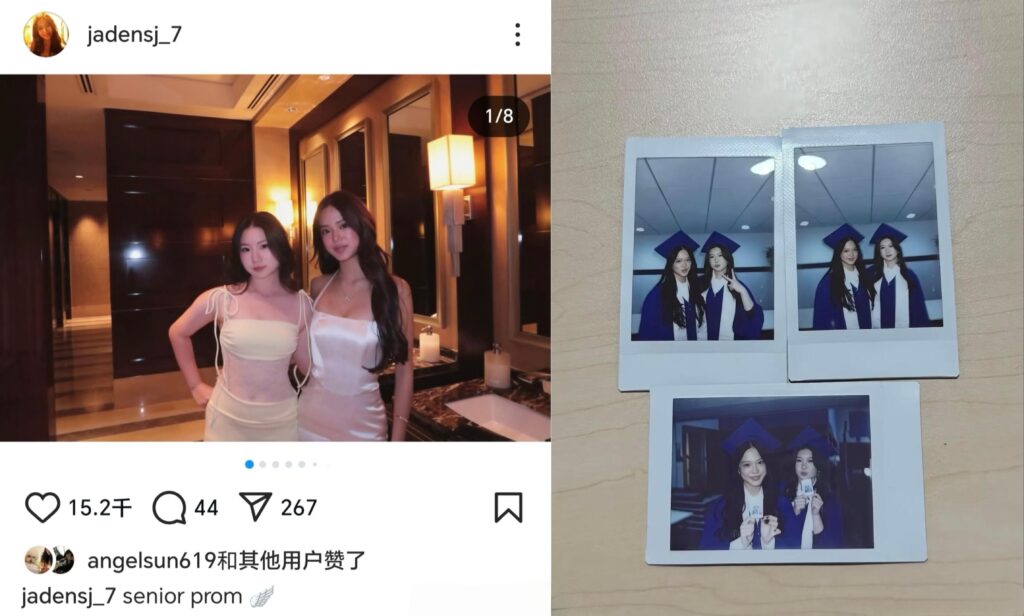 這場畢業舞會代表著Jaden高中生涯的結束。據悉,她就讀的國際學校學費昂貴,接下來她將追隨媽媽與大姊的腳步,遠赴加拿大攻讀大學。鍾麗緹本人畢業於加拿大魁北克大學,大女兒Yasmine也在當地留學。
