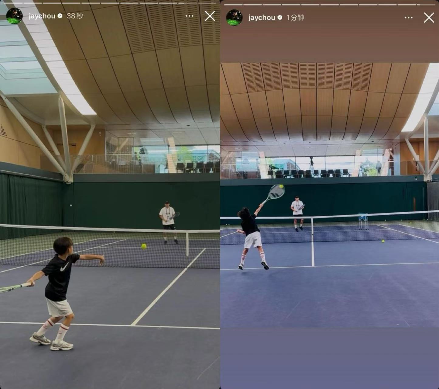 近日,周杰倫透過IG分享陪兒子Romeo打網球的日常照。畫面中,Romeo身穿運動服、手持網球拍,站在球場上全神貫注,雖然年紀小小,揮拍動作卻頗具架勢,模樣頗有小選手的氣勢。周杰倫則陪伴練球,畫面溫馨十足。