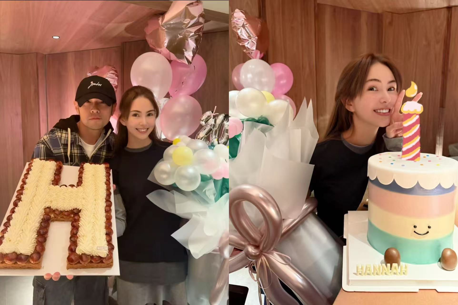 12日,昆凌迎來32歲生日,周杰倫精心準備氣球佈置與「H」字母蛋糕(取自昆凌英文名Hannah),讓她感動發文:「謝謝你的驚喜!」照片中,周杰倫戴棒球帽、穿格紋襯衫,一手捧蛋糕、一手摟著妻子,滿眼寵溺;昆凌依偎在他肩頭,手抱花束燦笑,宛如童話公主。