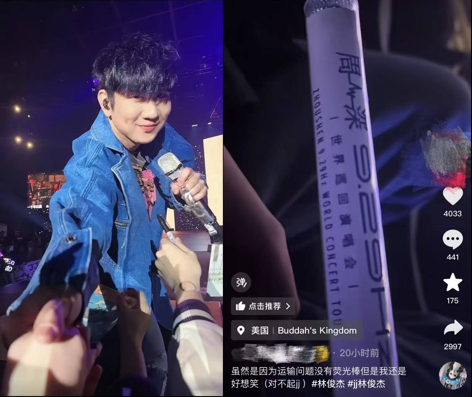 2月22日,華語樂壇天王林俊傑(JJ)於紐約舉辦「JJ20 FINAL LAP」世界巡迴演唱會,卻因一樁「螢光棒烏龍」意外引爆話題。現場一部分觀眾揮舞的竟是印有「周深世界巡迴演唱會」字樣的螢光棒,引發網友熱議「這波跨時空聯動太魔幻」。