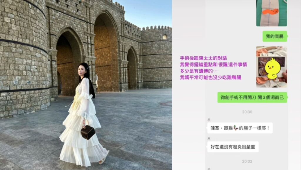 陳喬恩還幽默爆料,術後她將切除下來的盲腸照片傳給家人看,媽媽竟說「哇塞,跟雞鴨的腸子一樣耶」,令她忍不住吐槽:「我覺得擺錯重點和很飄這件事情,多少是有遺傳的……我媽平常可能也沒少吃雞鴨腸。」一家人以輕鬆幽默的方式面對病況。