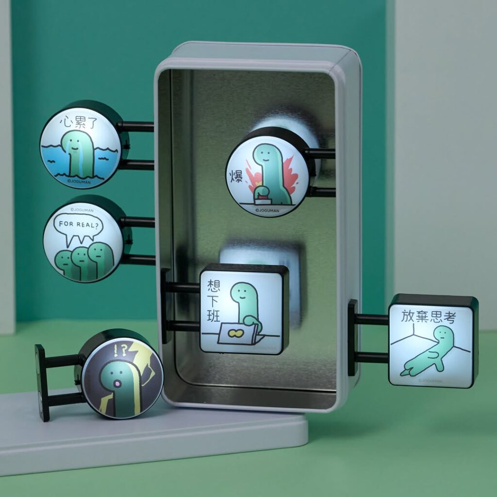 想讓同事秒懂你今天的心情?JOGUMAN的磁吸小燈牌就是你的最佳心聲代言人。共有 8 種情緒語錄,句句都是內心小劇場精華,搭配角色超有戲的表情,無論是圓形還是方形造型,都可愛到讓人心空一拍。