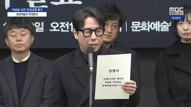 韓星李善均於去年12月27日離世,死因仍不明確,引起演藝圈大前輩的關注。導演奉俊昊等29個文化藝術相關團體要求當局調查真相,並呼籲媒體刪除不實報導。他們質疑警察提供媒體錄音檔的目的,以及警方處理案件的方式,要求改善法令以保護人權和知情權。李善均的死因仍然是謎,引起了社會的關切。