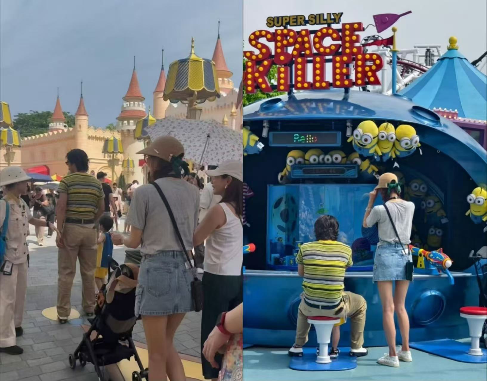一旁的AKIRA則以條紋短袖與卡其色長褲展現簡約風格,長髮鬍鬚造型更添成熟氣質。他全程陪伴3歲兒子遊玩,不時單手抱娃、整理氣球,舉止自然流露出奶爸的溫柔。夫妻倆對孩子保護有加,刻意以氣球遮臉、調整抱娃角度,盡可能避免兒子曝光。不過網友仍發現孩子身高頗高,3歲約已達105公分,略高於同齡平均值,且舉止有禮,玩完遊戲後主動把玩具歸位、吃冰前還先讓媽媽一口。