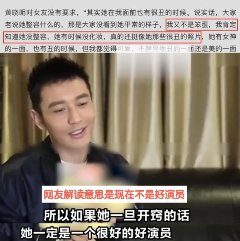但一旦跟他的形象或利益發生衝突,要嘛他不護妻,要嘛就護得很裝。比如Angelababy需要澄清自己不是小三,他不談「自己當時有沒有跟李菲兒分手」的事實,就只給個態度: