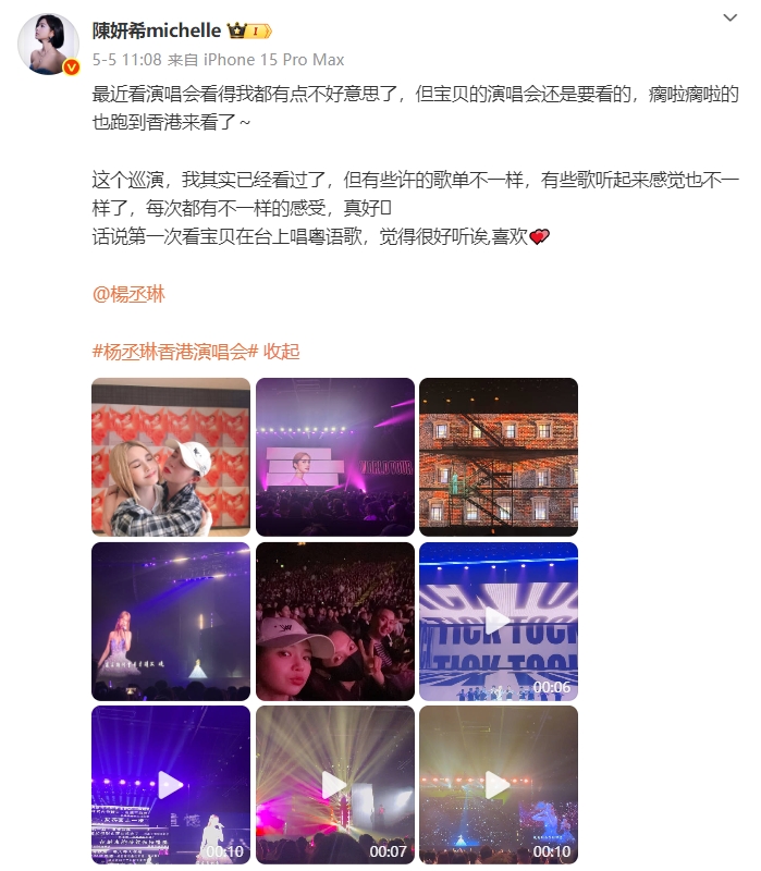 陳妍希自從年初和陳曉官宣離婚後,整個人彷彿經歷了逆生長,而且一改過往的低調,經常和朋友聚會、曬照,生活過得超chill!5月5日,她現身香港觀看好友楊丞琳的演唱會,兩人還在後台甜蜜互動,畫面曝光後也引發不少討論。