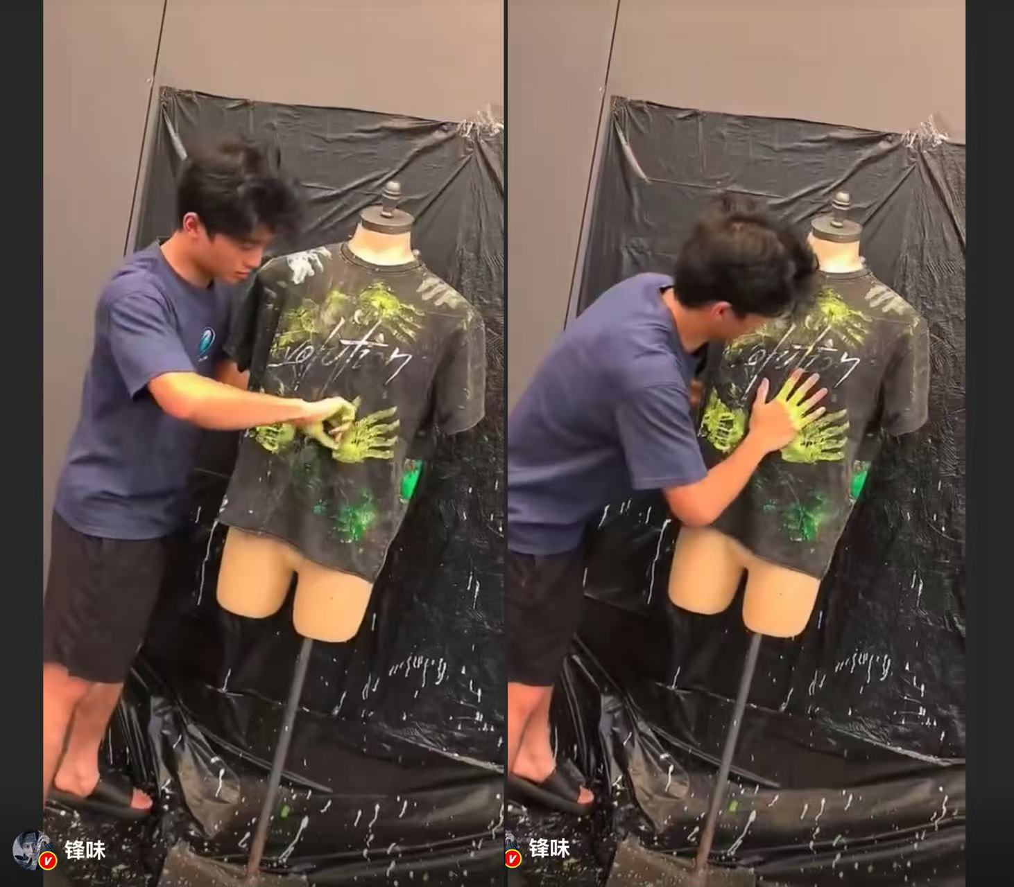 設計中藏著雙重巧思:謝霆鋒的潑墨與配色延續了標誌性的舞台風格,Lucas的手印則多了幾分童趣與情感溫度。因創作過程即興,就連謝霆鋒也笑說做不出一模一樣的第二件。
