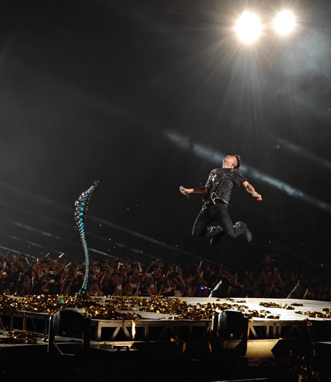 這波熱議源自他在演唱會上的一個名場面:演唱時突然縱身躍起,騰空高度讓粉絲誤以為是吊鋼絲,落地後不僅氣息絲毫未亂,還全程維持帥氣表情管理。粉絲翻出舊影片發現,他「從小跳到大都沒停過」,45歲依舊挑戰體能極限。