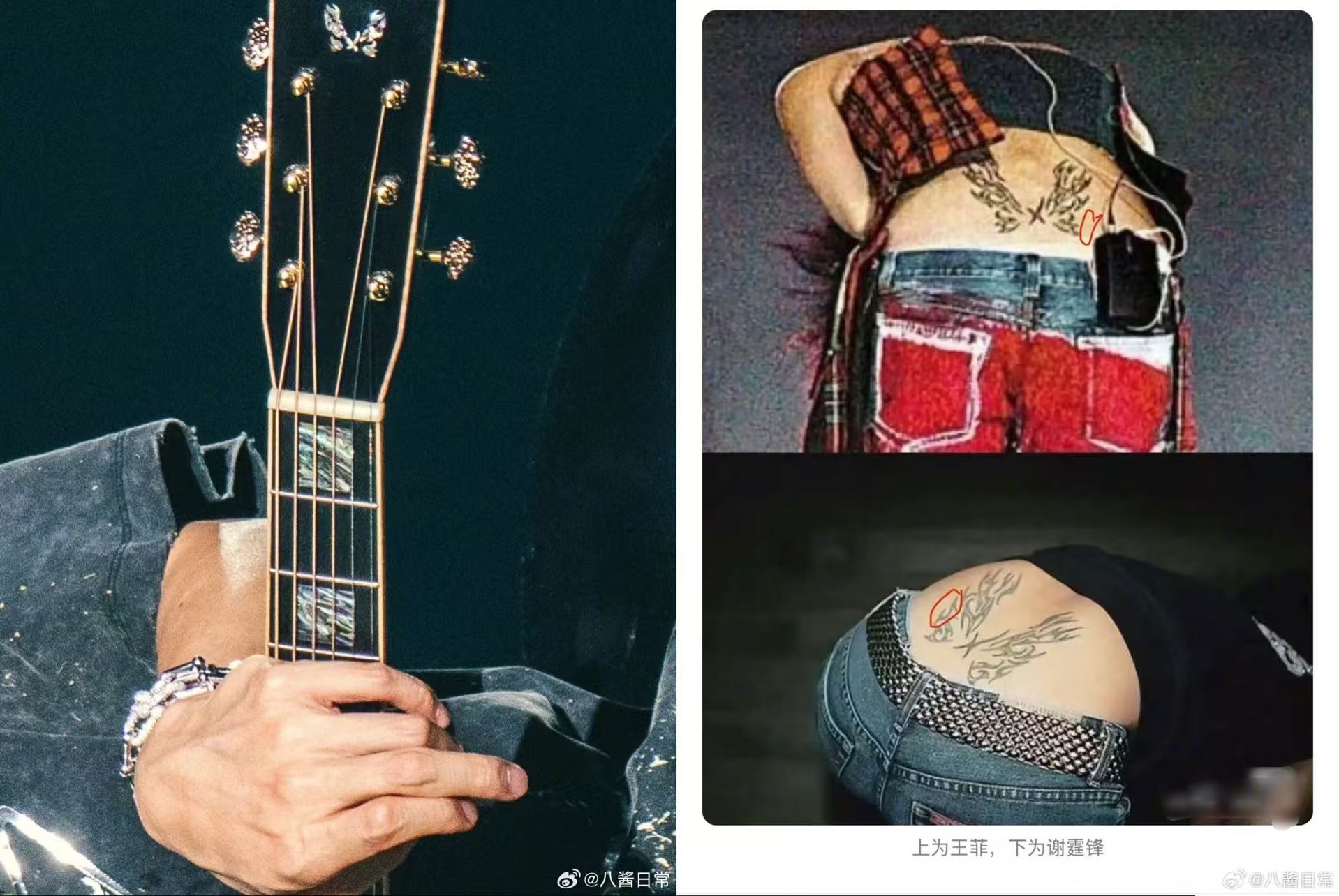值得一提的是,王菲與謝霆鋒的蝴蝶刺青略有差異,王菲版本的翅膀下方少了一筆,而這次吉他上的圖案,正是與王菲完全一致,被外界解讀成謝霆鋒「對愛人的深情致敬」。當晚,他抱著這把吉他演唱《別來無恙》,歌詞「我會永遠欣賞你任何模樣」,更被粉絲認為是唱給王菲的心意。