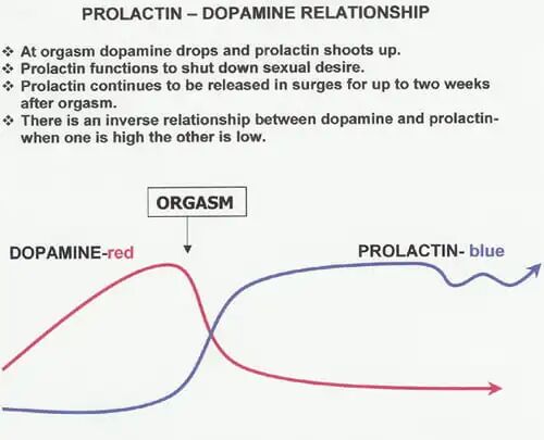 性行為過程中,大腦會釋放多巴胺、血清素等帶來愉悅感的快樂激素。但高潮過後,這些激素濃度可能急速下降,改由催乳素上升來平衡。這種化學物質的劇烈變化就像坐雲霄飛車,可能直接導致情緒低落。