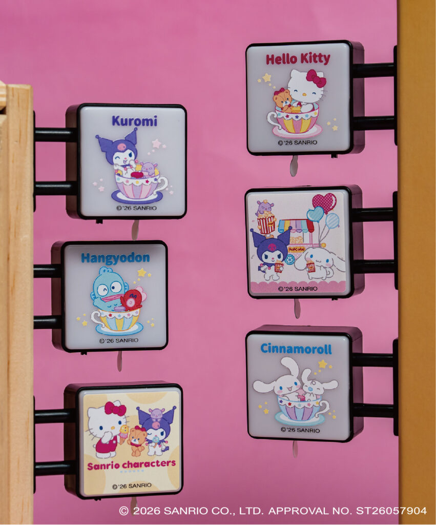 - 甜點小舖: 酷洛米與巴庫手拿冰淇淋、大耳狗喜拿手捧爆米花,呈現出遊樂園特有的甜蜜感。