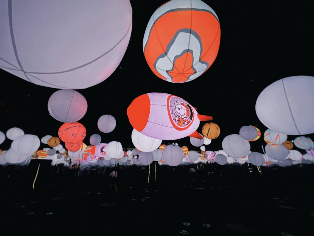從原作中史努比那份簡單卻深刻的幽默與哲思,展場以不同主題展區層層堆疊,其中太空展區尤其吸睛,不僅打造沉浸式星際環境,還有定時出現的隱藏版太空梭彩蛋,以及親子最愛的球池空間,讓大小朋友都能盡情拍照、放電、探索宇宙!