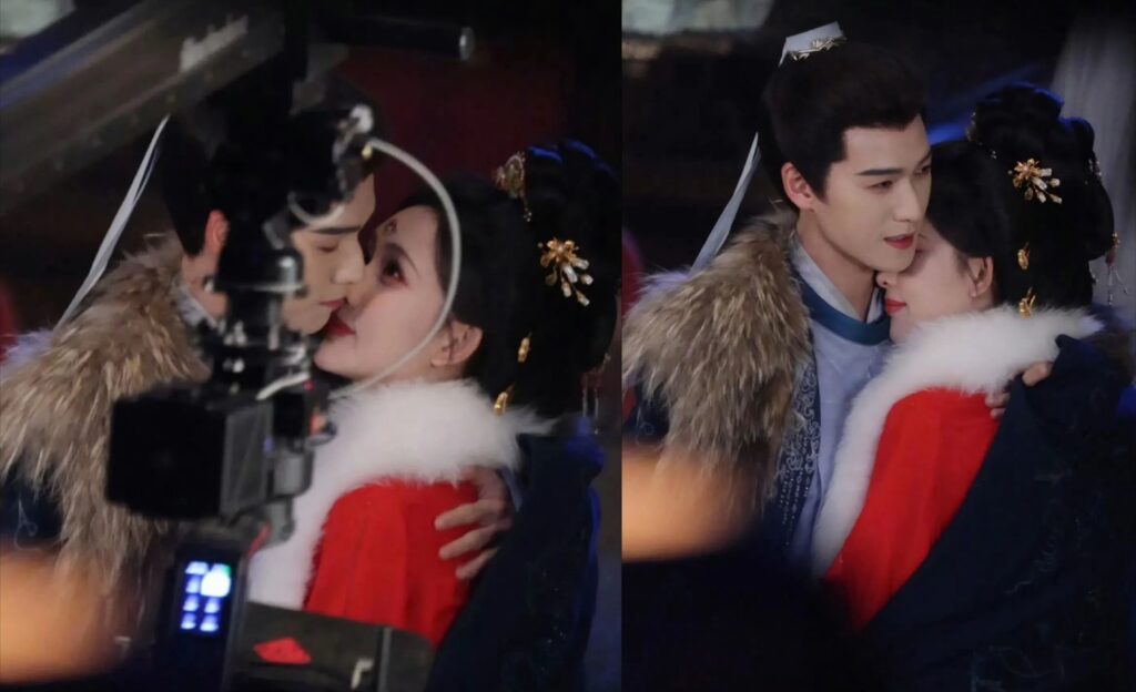 從網友公開的片場影片可見,拍攝雪景戲時,李昀銳替孟子義披上披風,兩人靠得很近低聲交談。即使鏡頭已停,雙手仍自然牽著,還一度貼近額頭相視而笑,氣氛顯得相當親近。等待下一場拍攝時,孟子義被拍到輕靠在李昀銳肩上,而李昀銳則幫她整理髮飾與服裝,整體互動流暢,看起來像情侶般自然。