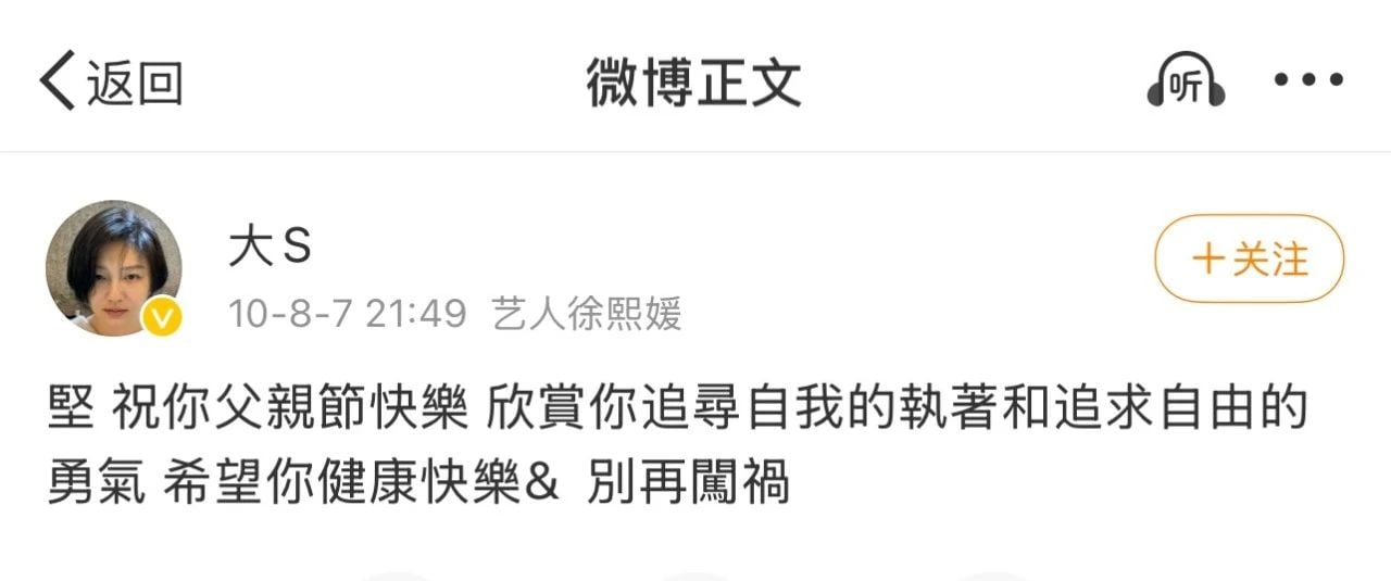 雖然這兩年每次在朋友聚會的出場她還是那麼光鮮亮麗,但背後,是她好幾個月的不出門——她還是很有偶像包袱,不希望被拍到不好看的一面。大S,如果還有來世,願妳永遠都是上圖裡那個明媚陽光的少女。如果妳不想再有下一世,那麼,R.I.P.,也祝福天下所有的女孩,小時候不用做所有人的姊姊,長大後不用當所有人的媽。