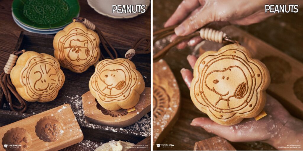 威秀影城今年特別發想出「史努比絨毛月餅」系列,顛覆以往月餅油膩的印象,以短絨布製成,外觀1:1還原月餅圓潤可愛的造型,搭配史努比、奧拉夫與糊塗塌客三大人氣角色立體電繡,質感細緻,讓人忍不住想收藏。更特別的是,每個吊飾都裝進「真實月餅包裝袋」,乍看之下就像剛出爐的月餅,趣味十足。無論掛在包包、手機,或是作為中秋禮物,都能瞬間療癒人心。