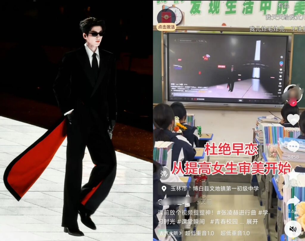 為了防止學生太早談戀愛,現在老師的招數越來越有創意。近日,大陸一位中學老師在課堂上播放演員張凌赫的伸展台走秀影片,並展示他亮眼的高考成績單,試圖以「高顏值學霸」作為標竿,拉高學生對同儕的審美與學業標準,此舉迅速在網路引發兩極熱議。